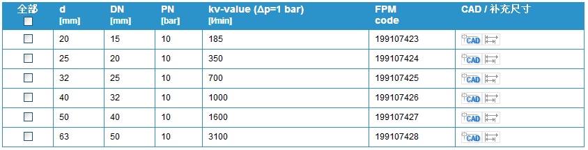 閥門個別配置(參見表格)