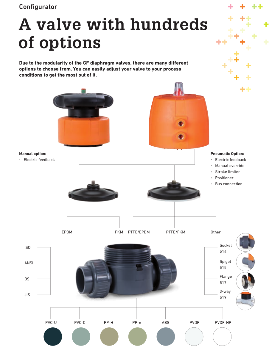 +GF+高性能隔膜閥,擁有豐富的產(chǎn)品配置,能夠?yàn)榭蛻籼峁┩昝赖慕鉀Q方案。
